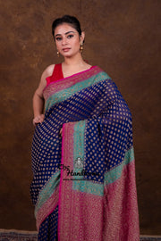 Pure Khaddi Georgette Handloom Banarasi Saree - Antique Zari