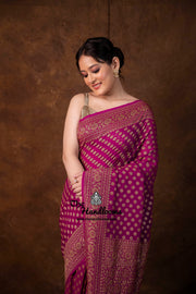 • Experience the timeless elegance of authentic Banarasi craftsmanship with this Pure Khaddi Georgette saree, adorned with intricate Antique Zari work. Handwoven on traditional looms in Varanasi, this saree showcases the finest quality georgette fabric paired with exquisite gold zari detailing that reflects centuries of weaving heritage. The lightweight, breathable georgette drapes beautifully while the antique zari adds a sophisticated, vintage charm perfect for weddings, festivals, and special occasions. Each piece is a testament to the skill of master weavers, making it a treasured addition to any traditional wardrobe