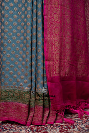 • Experience the timeless elegance of authentic Banarasi craftsmanship with this Pure Khaddi Georgette saree, adorned with intricate Antique Zari work. Handwoven on traditional looms in Varanasi, this saree showcases the finest quality georgette fabric paired with exquisite gold zari detailing that reflects centuries of weaving heritage. The lightweight, breathable georgette drapes beautifully while the antique zari adds a sophisticated, vintage charm perfect for weddings, festivals, and special occasions. Each piece is a testament to the skill of master weavers, making it a treasured addition to any traditional wardrobe