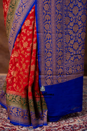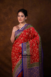 Pure Khaddi Georgette Handloom Banarasi Saree - Antique Zari