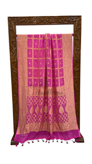• Pure Georgette Banarasi Bandhani Handloom Saree