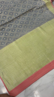 - Speciality - Elegant silver zari woven in the exquisite kadwa weave, on a dainty palette. Enduring art from Banaras!