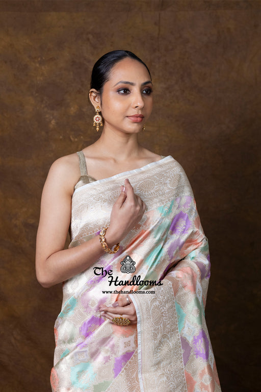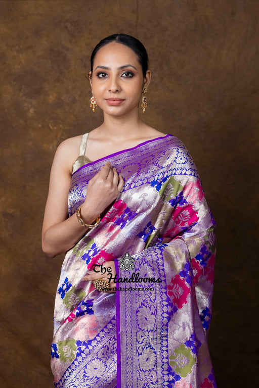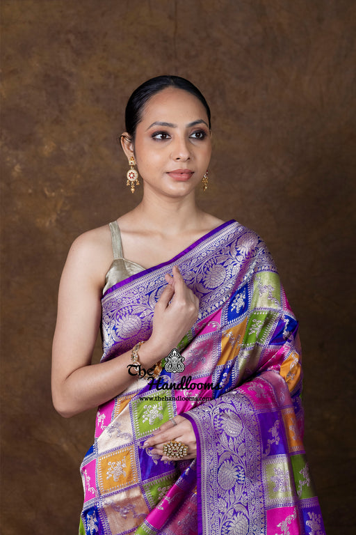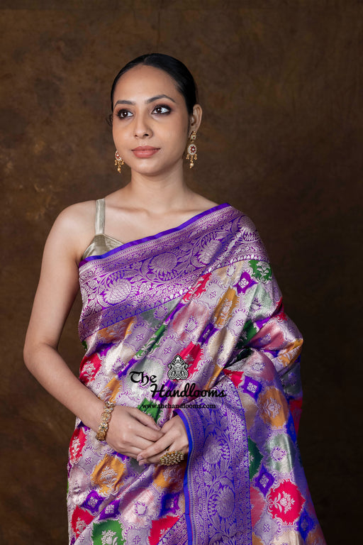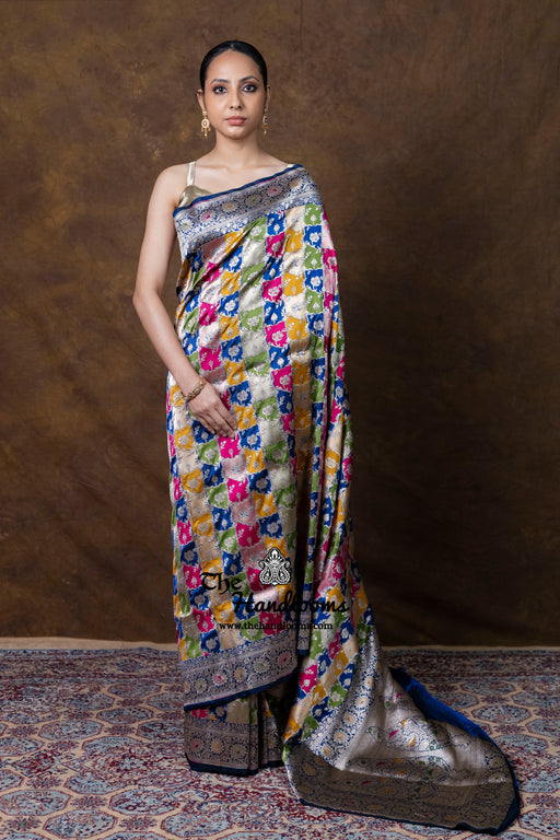 View full detailsExperience the elegance of tradition with this Multicolor Pure Katan Silk Banarasi Handloom Saree. Crafted from premium Katan silk, it features in...
