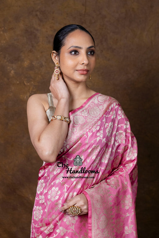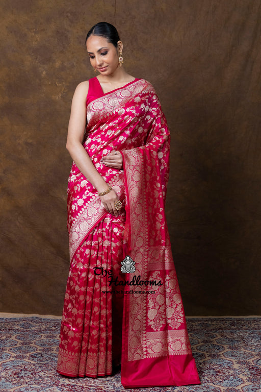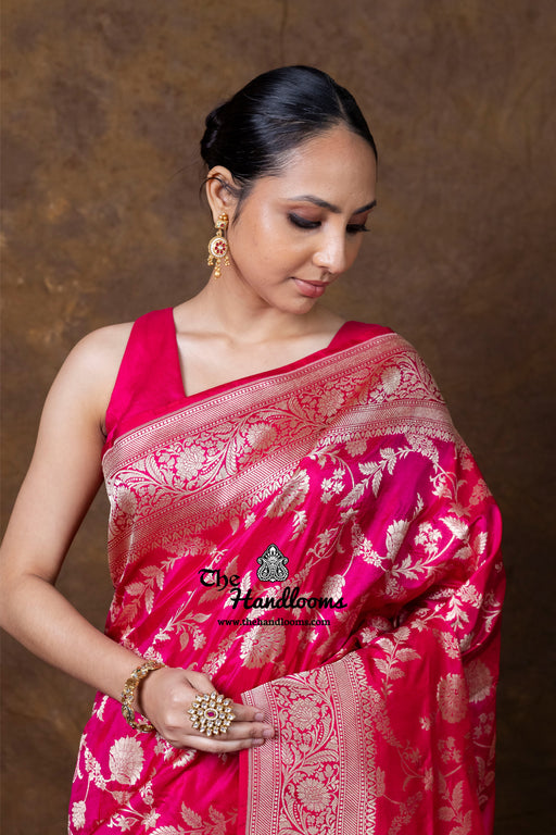 View full detailsExperience the timeless elegance of authentic Banarasi craftsmanship with this Pure Katan Silk saree, meticulously handwoven in Varanasi. The intr...