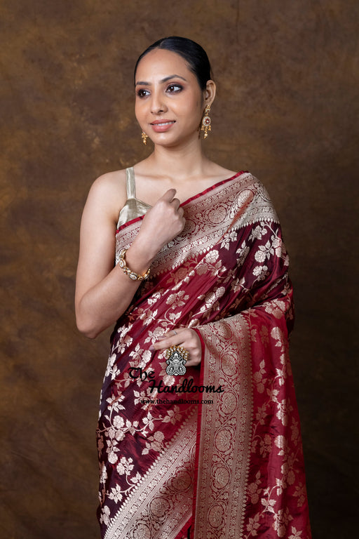 View full detailsCrafted from pure tussar silk, this Banarasi saree exemplifies the refined artistry of traditional handloom weaving. The meenakari work—intricate...