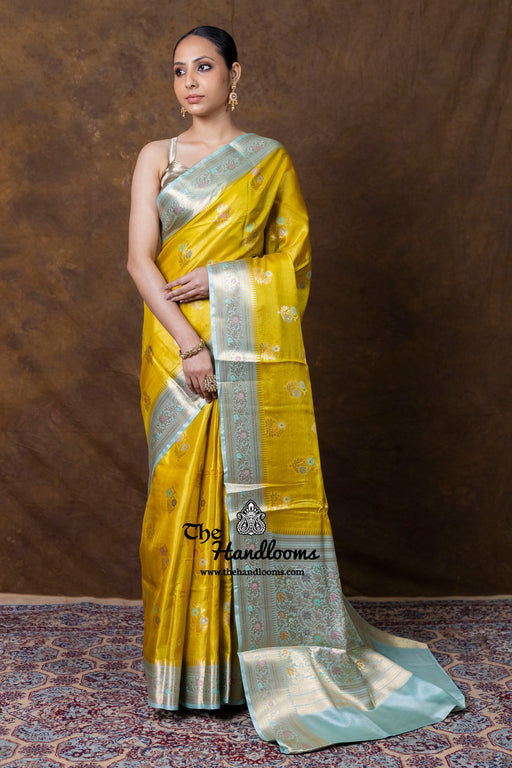 View full detailsExperience the timeless elegance of authentic Banarasi craftsmanship with this Pure Tussar Silk saree, adorned with intricate Meenakari work. Han...