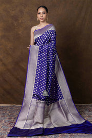 Experience the timeless elegance of authentic Banarasi craftsmanship with this Pure Katan Silk saree, meticulously handwoven in Varanasi. The intricate all-over jaal work showcases delicate geometric patterns that exemplify traditional weaving techniques passed down through generations. Crafted from premium katan silk, this saree drapes beautifully with a luxurious sheen and natural lustre. Perfect for weddings, festivals, and special occasions, it combines heritage artistry with refined sophistication. Each piece is a testament to the skill of master weavers and makes an investment in timeless Indian textile tradition