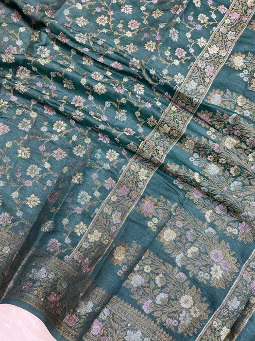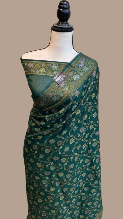 Bottle Green Pure Butter Crepe Banarasi Saree
