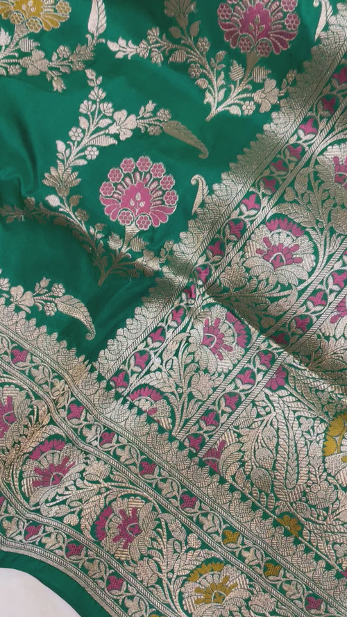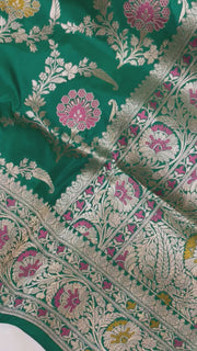 Green Pure Katan Silk Banarasi Handloom Saree - All over Jaal work - With Meenakari