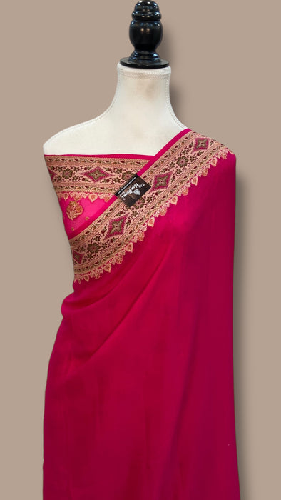Hot Pink Pure Chiffon Khaddi Banarasi Saree