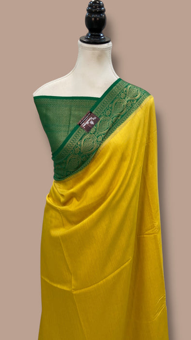 Mustard Yellow Moonga Georgette Handloom Banarasi Saree