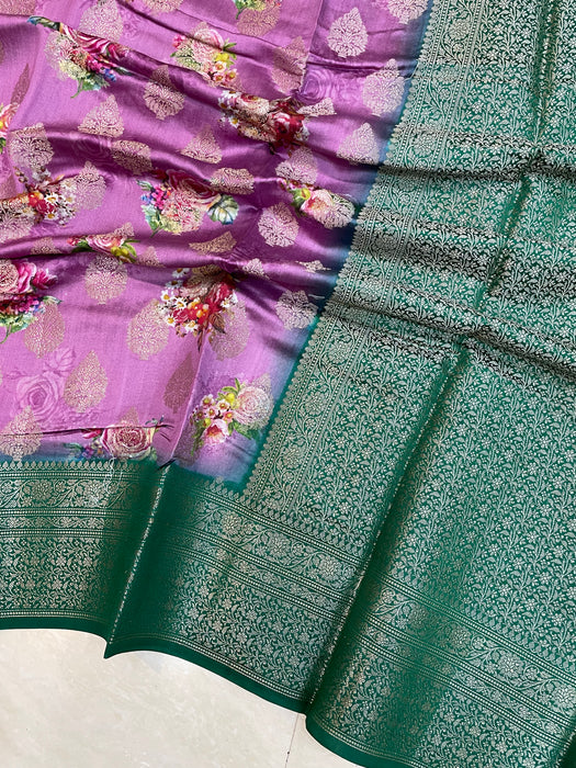 Pure Chiniya Silk Handloom Banarasi Saree Digital Print