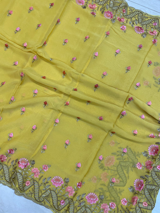 Pure Georgette Chikankari Handloom Banarasi Saree