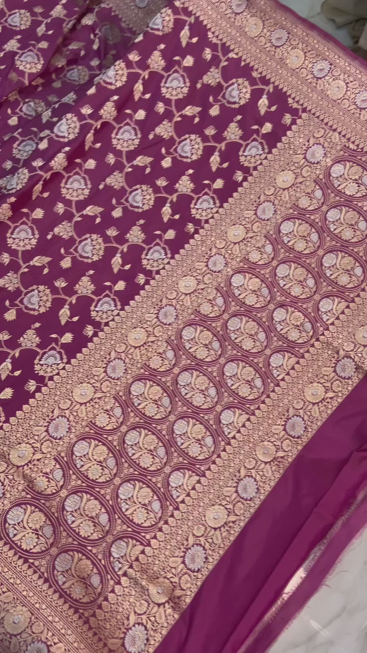 Pure Katan Silk Banarasi Handloom Saree - All over Sona Roopa Jaal work