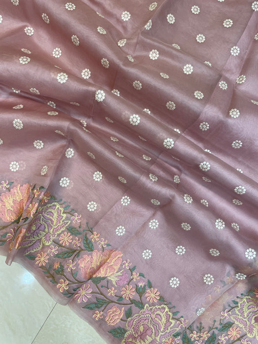 Pure organza Chikankari Handloom Banarasi Saree