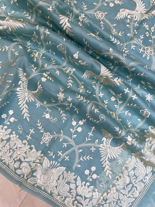 Take your wardrobe to the next level with this Pure organza Chikankari Handloom Banarasi Saree. Beautifully crafted with pure organza and delicate chikankari embroidery, this saree will be the perfect addition to your collection. Boasting a timeless, handloom aesthetic, this saree is a must-have for any fashionista looking to upgrade their look.
