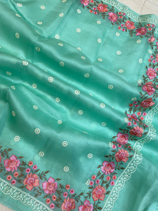 Like all magnificent things, it is very simple". Delicate, intricate and unforgettable. A quintessential, heritage Banarasi saree with time-honoured motifs woven in the exquisite kadhua style on gossamer kora silk