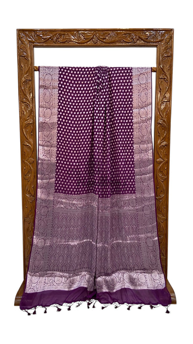 Wine Pure Chiffon Khaddi Banarasi Saree